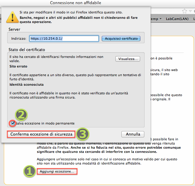NON usare l'URL che si trova in corrispondenza del collegamento